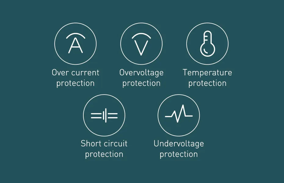 • Smart Safety Protection: Built-in safeguards prevent overheating, overcharging, and short circuits.